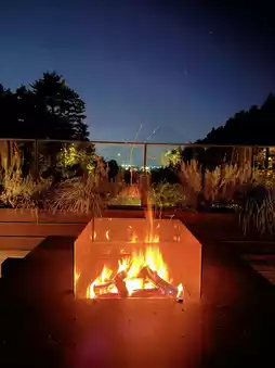 By the way, each room also has a fire pit, and you can even have a flame lit, which goes out after about two hours 🫶