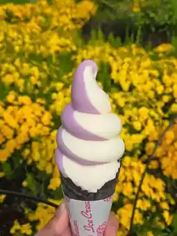 Sitting on a bench by the flowers, eating ice cream, looking forward to the appearance of Mount Fuji. The blue butterflies, the milky white sweetness, and the floral fragrance mixed in the wind are all slowly blooming in the sunshine...