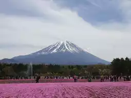 Mount Fuji Photography: Snap postcard-perfect shots of Fuji rising behind a pink floral carpet.