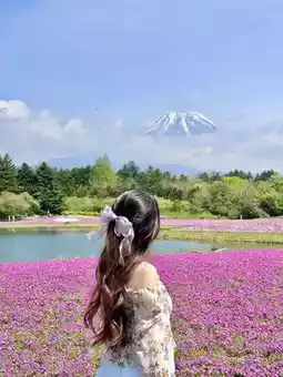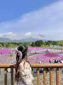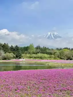 🌸 Compared to cherry blossoms, Shibazakura (moss phlox) offers a longer blooming season and more vibrant colors during April to May. 🌺 The hills covered in light pink and deep pink flowers create a breathtaking view, perfect for photography. 🩷 Mount Fuji's appearance changes every minute, so cherish every moment you get to see it. ✨ Often, a large cloud can drift by and completely obscure the mountain.