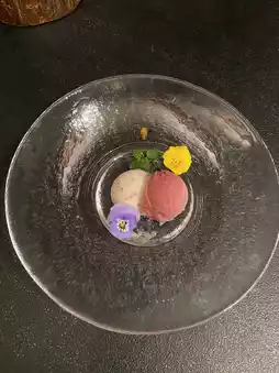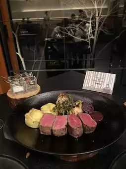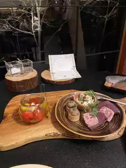 For dinner, we enjoyed a course meal at the dining area, inspired by the glamping resort theme of Hoshinoya Fuji. The dishes, made with local ingredients nurtured in the environment of the Mount Fuji foothills and infused with a glamping touch, were all exquisite, right down to the dessert.