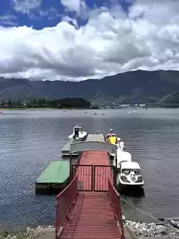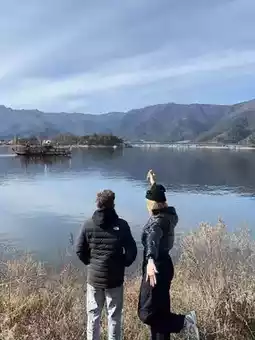 The north shore of the lake offers the best views of Mount Fuji, especially during spring and autumn when the cherry blossoms or maple leaves create a backdrop.