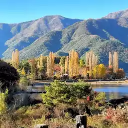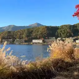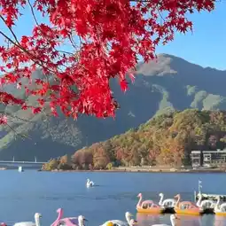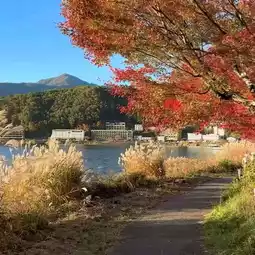 #September Destinations 2025 A late autumn afternoon 🌤️ Funatsuhama Onsen Town is just the right amount of quiet 💫 A stroll along the shores of Lake Kawaguchi 👣 The red maple leaves and golden ginkgo leaves intertwine to form a corridor 🍁 Dappled sunlight falls like a gentle filter ✨