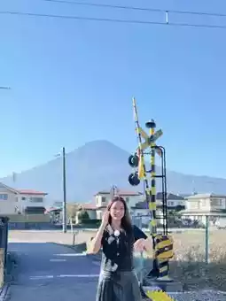 📍The third stop is the alley next to Lawson. It's another popular spot because of the cute train tracks and the Japanese-style houses and Mount Fuji in the background. It's absolutely stunning!