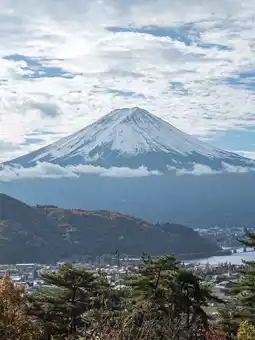 In the morning, take the cable car up to the Mt. Fuji Panoramic Ropeway 🚠 for a full view of Mt. Fuji, complete with a dreamlike view of the lake below. 🌄 We recommend visiting on a clear day. The light reflects off the snow on Mount Fuji, creating a shimmering golden glow ✨
