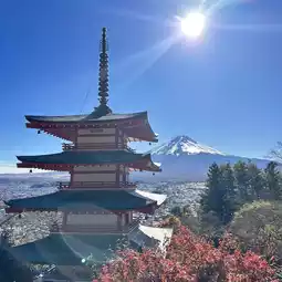 Arakurayama Sengen Park has a beautiful pagoda, and there is a photo spot to catch both the pagoda and Mount Fuji. However, you have to climb almost 400 steps to get to the top where the pagoda is.