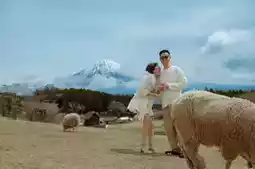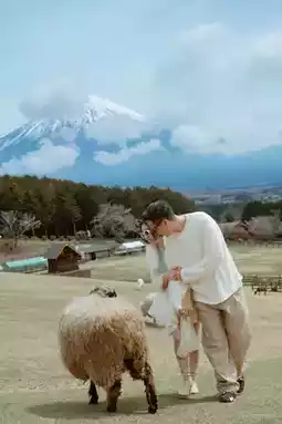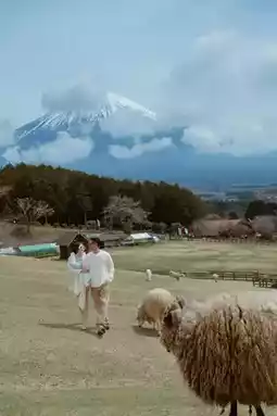 As soon as I arrived, I was captivated by the vast, open space with rolling green fields and sheep leisurely grazing. The sky was clear that day, with clouds gently drifting around the peak of Mount Fuji, creating a breathtaking, almost fairy-tale-like scenery.