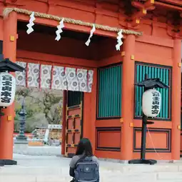 As you enter from the road, you'll see a striking red entrance. Before entering the shrine, on the left-hand side, there's a pond where you can rinse your mouth and hands before exploring.