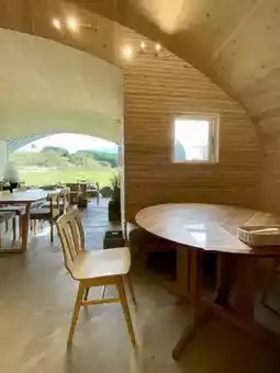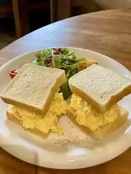 The silver, futuristic building contrasts beautifully with the warm, wooden interior filled with flowing curves—pure design joy. We ordered the red wine chicken stew set (with soup, salad, and bread) and a fluffy egg sandwich. Both dishes were hearty and delicious.