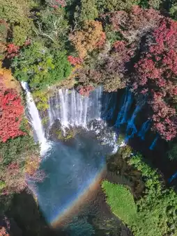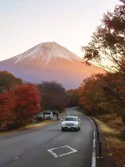 Autumn transforms Lake Tanuki into a breathtaking canvas. The majestic, often snow-capped peak of Mount Fuji is perfectly framed by the brilliant reds and golds of the surrounding autumn foliage, with the entire spectacular scene mirrored in the lake's calm waters . It's a photographer's paradise and a serene escape into Japan's most iconic landscape.
