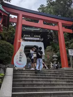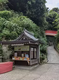 Beautiful area with a lot of interesting stuff. The shrine is the first you encounter as you access the island through the bridge. From here you can climb up following the stairs or just pay a fee for the escalator.