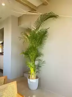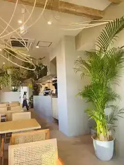 The interior is white with a touch of greenery, creating a calming atmosphere.✨The spacious cafe allowed me to relax.☺️