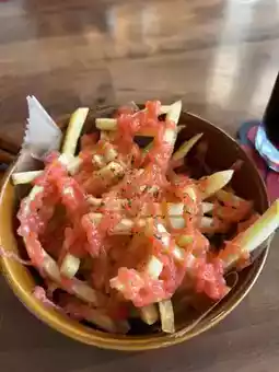 Of course, they also have a wide selection of food for humans! It was hot, so I ordered a cola float and mentaiko fries. 🍟