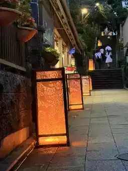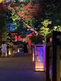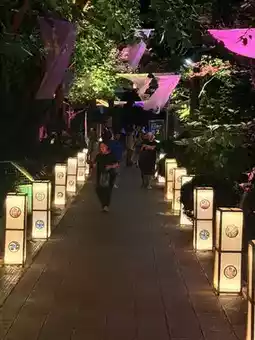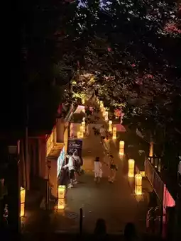 As you enter Enoshima Shrine, you can't help but smile. The stairs and pathways are adorned with lanterns, complemented by colorful silk fabrics and tree light projections, making it feel like you're stepping into a divine realm.