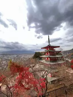 There is an observation deck, so if the weather is good, you can see Mt. Fuji over the five-story pagoda🙌🏻💓This time, the top of Mt. Fuji was not visible, so we only saw the base, but it was still spectacular·͜·✌︎´-The stairs are long, but the autumn leaves are so beautiful that we managed to climb all the way to the top✨