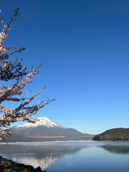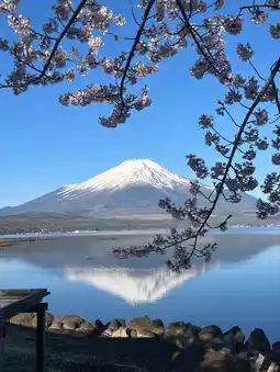The smallest of Fuji Five Lakes in Yamanashi's Fujikawaguchiko Town, Yamaguchi-ko boasts the area's most pristine sakura views. Each mid-April, 200 wild yamazakura bloom along its shores, their pale pink blossoms framing reflected Fuji-san in a "compact but mighty" composition locals call "the mountain's best floral match."