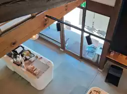 After ordering Mizu Shingen Mochi at the register on the first floor and going up to the second floor, you will see a magnificent view of Mt. Fuji (it was cloudy so we couldn't see it)! While looking at this magnificent view, I ate the clear Mizu Shingen Mochi. It is sprinkled with soybean flour and then brown sugar syrup.