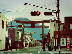 Strolling along Fuji Yoshida Honmachi Shopping Street, taking a perfect photo with the Golden Torii and Mount Fuji