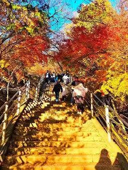 From a photographer’s point of view, this is the season where every angle tells a story. The five-storied pagoda stands proudly amid a sea of color, its vermillion hues blending seamlessly with the autumn foliage. The climb up the long stone staircase, though steep, rewards visitors with breathtaking panoramic views—Mount Fuji rising in quiet majesty above a tapestry of crimson and amber trees.