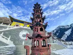 Located on the eastern shore of Tianchi in Tianshan, the Xiwangmu Ancestral Temple is a Taoist temple known for its splendid yellow architecture.... This place boasts a unique landscape with the majestic mountains and the emerald Tianchi Lake as its backdrop. The temple's architecture harmoniously blends yellow and red colors, creating a warm and mysterious atmosphere.