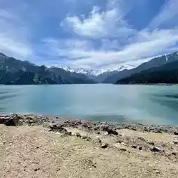 About an hour and a half's drive from Urumqi, the contrast between the snow-capped peaks of the Tianshan Mountains and the clear blue lake was breathtaking. 👏