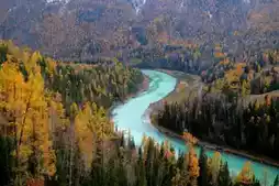 1. Kanas Scenic Area ๐๏ธ: Known as "a paradise on earth," where golden taiga forests meet the azure lake. Highlights include the morning mist at Fairy Bay ๐ซ๏ธ, the S-shaped Moon Bay ๐, and the serene Wolong Bay. On a clear day, climb the Fish Viewing Platform for a panoramic view of the lake and mountains. If you're lucky, you might even witness the dreamy sea of clouds and Buddha's light!
