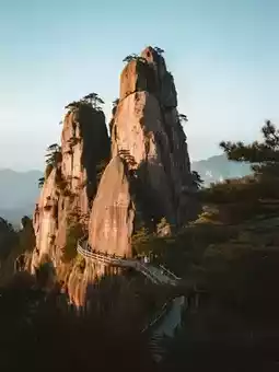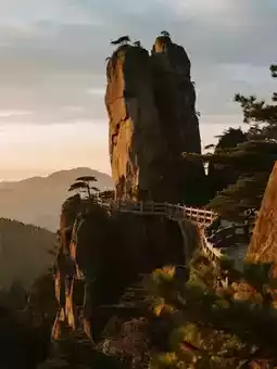 · At the "Shopping Mall Shuttle" sign, shoot upwards to include the arch bridge + suspension bridge + mountain scenery all in one frame🏔️
