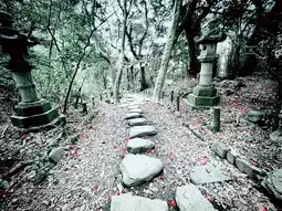 This island is located not far from Tojinbo Cliffs, and you can clearly see it from the Tojinbo Cliffs. There are no restaurants or houses on the island, just shady trees and ancient shrines with mystical stories. Just search for them on Google.