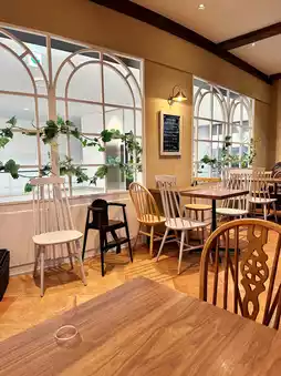 One of the reasons this shop is popular is that you can see planes taking off and landing from the window seats.