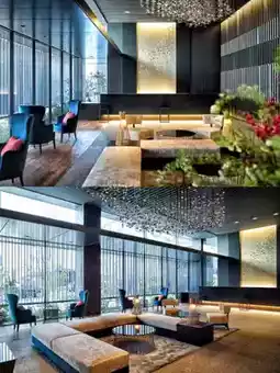 The hotel's top floor features a refreshing large bath. The design here is inspired by the gentle sway of water waves, and the view of the water garden under the night lights is mesmerizing. The bath also has a special women's-only rest area and an open-air balcony, allowing you to find a moment of tranquility in the busy city life.