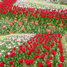 There are many well-maintained gardens inside, with colorful and vibrant tulips.