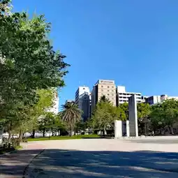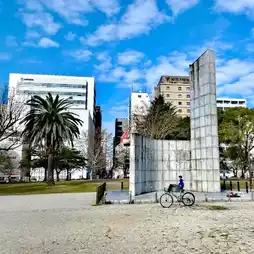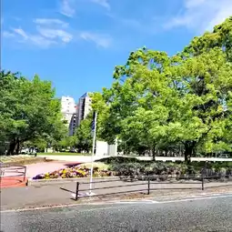 Reizen is located in a park near Nakasu and Kawabata-dori shopping streets. This is a square park with a monument, public toilets and a plaza, but there is paid parking on the surrounding streets. Although there are tall buildings all around, the sky here is vast and the sun is bright. There are benches, which is a great place to rest.