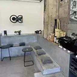 The interior of the store is made of exposed concrete, giving it a modern and chic impression🖤🤍