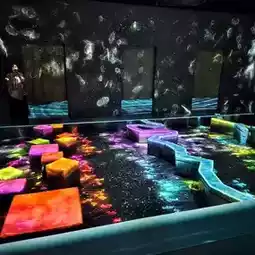 The theme of TeamLab in Fukuoka revolves around the forest. Upon entering, visitors can interact with the animals in the forest through the official app. It's fascinating to observe the virtual forest animals ❤️. Additionally, there are some small facilities that allow both adults and children to engage in activities ✨️. Each TeamLab location has its unique features, so don't miss out!