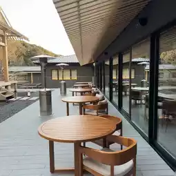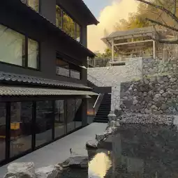 The moment I arrived at the hotel, I was impressed by its charming Japanese architectural style. The entire hotel is mainly made of wood, with brown wooden beams, blue-gray roof tiles, and a carefully designed Japanese courtyard, which is simple and elegant. In the courtyard, the scattered stone lanterns, the gurgling stream, the rockery of various shapes and the exquisitely trimmed green plants are full of Japanese Zen. The hotel blends perfectly with the surrounding mountain and forest scenery, as if it grew out of nature.