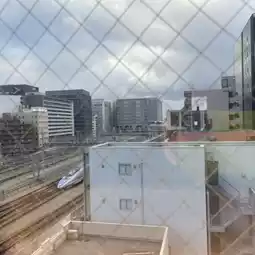 The view from the room window overlooks the JR tracks, which is really great.