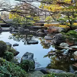 As soon as you step into the garden, the Japanese elegance and tranquility will hit you. The carefully trimmed pines and cypresses have unique shapes, like works of art carved by nature. The surface of the pond is like a mirror, the lotus flowers stand gracefully, and the carp swim leisurely in the water, creating ripples.