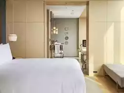 Environment/Facilities: The Ritz-Carlton Fukuoka is located in the heart of the city, perfectly blending Japanese elegance with modern luxury. The suites are ingeniously designed, spacious, and comfortable, decorated primarily in a minimalist Japanese style with soft tones and selected furniture, creating a warm and elegant atmosphere. The large floor-to-ceiling windows offer a panoramic view of Fukuoka's bustling cityscape, instantly relaxing guests. The hotel features a luxurious spa, indoor pool, and gym, all serviced by a professional team, ensuring guests achieve complete relaxation during their stay. The restaurant offers local delicacies and international cuisine, allowing guests to enjoy a culinary journey without leaving the hotel.