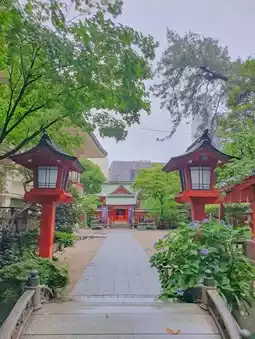 It is a small shrine with a uniquely Japanese atmosphere, but it is located quietly between the high-rise buildings of the Tenjin area.
