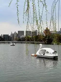 If you come to see the cherry blossoms, don't miss it. The Shiomi Turret was rebuilt and just opened to the public this spring. It was moved to Sofuku-ji Temple in 1908 and used as a Buddhist temple. The Fukuoka City Government carried out the restoration of the monument, using materials and methods from the Edo period. You can see how superb the carpenters' skills are. Then you can go to the nearby Ohori Park to row a swan boat and enjoy the romance of spring.