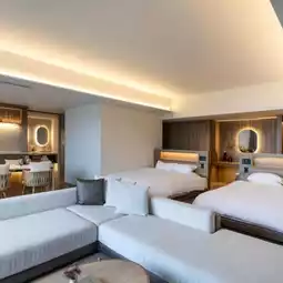The Ritz-Carlton, Fukuoka is located on the 24th to 35th floors of the Fukuoka Tenjin CC Building, the tallest building in Fukuoka. It is the only Ritz-Carlton in Kyushu! All guest rooms are located 100 meters above the ground, with floor-to-ceiling windows offering panoramic views of Hakata Bay and Fukuoka Tower. The most popular one is the Bay View Suite. In the morning, you can see the harbor in the morning mist, and at night, you can enjoy the night view. The room is equipped with a Japanese tea set, so you can enjoy the view while sipping matcha. It is luxurious and elegant.