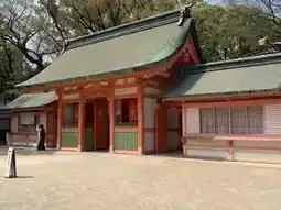 In front of the shrine building standing silently,