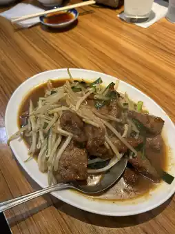 Large serving of char siu noodles 880 yenFried rice 580 yenFried chicken 700 yenGyoza 400 yenStir-fried chives and liver 700 yenWe shared it with three people and ate it all.