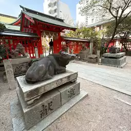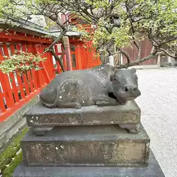 Like Dazaifu Tenmangu, the shrine building and torii gates are painted red, and cow statues are enshrined here and there.