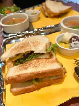 During my trip to Fukuoka, I went to a long-established coffee shop in Hakata that was founded 30 years ago☕️I went there on a weekday late lunch time and it was full and there was a bit of a waiting list. It's very popular😘I ordered a set of selectable sandwiches, vegetable and mushroom soup, salad, fruit, and drink that can be ordered all day☕️You can choose from 5 types of sandwiches, so I tried the slightly unusual Marco and Romiole🥪It was stylish and delicious with gorgonzola cheese and anchovies😋Cheese toast and Mont Blanc seem to be popular too🥰