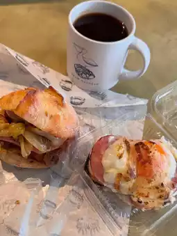 After buying your bread, you can choose to dine in, but you'll need to walk over to a nearby location. There, you can order coffee, or if you prefer not to queue for bread, you can opt for their bread set at the dining area, which is also a great choice.