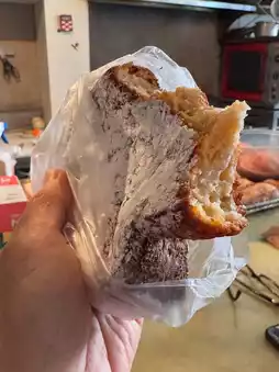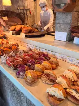 Arriving at 8:15 AM, there was already a long queue. Since the shop is small, only seven customers are allowed inside at a time to purchase bread. There are many varieties of bread available, and most customers quickly pick out what they want (on average, each person buys five or more types). This ensures the queue moves quickly, and you won't have to wait too long to get inside.