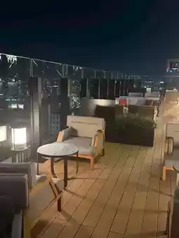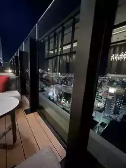 The terrace lounge offers a panoramic view of Hakata Bay and the night view🏙