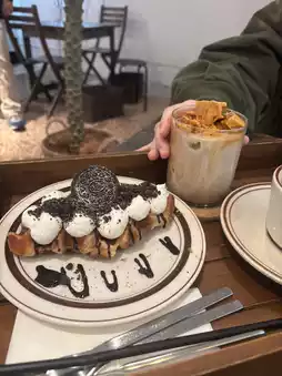 The scone display and overall vibe are reminiscent of cafes in Korea, giving you the feeling of being in a Korean cafe!