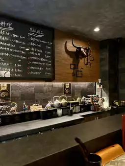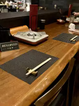 The interior of the restaurant features a refined modern Japanese design, with warm wooden elements and soft lighting creating a cozy atmosphere. Subtle decorations and gentle background music enhance the sense of a special, private dining experience.